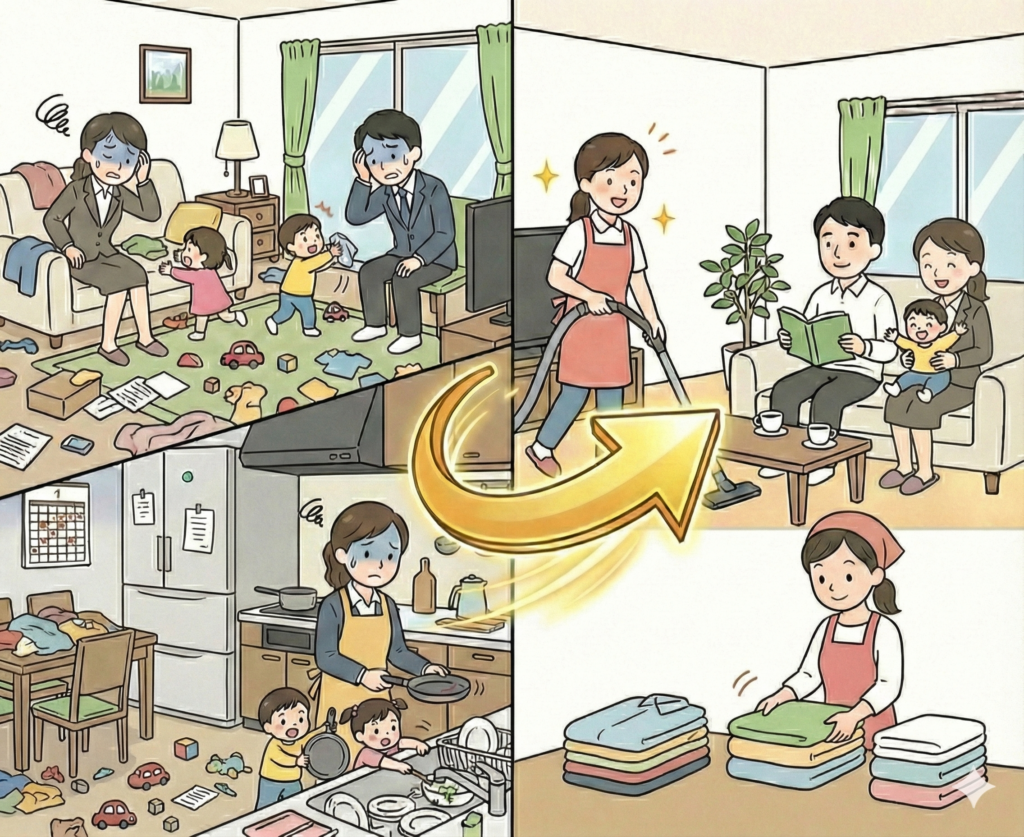 仕事と家事の両立で毎日が忙しく、掃除や片付けに手が回らないご家庭も多いはず。週末も子供の習い事や買い物で時間がなく、家のことが後回しになりがちです。家事代行や清掃サービスを利用することで、時間と心の余裕を取り戻せます。