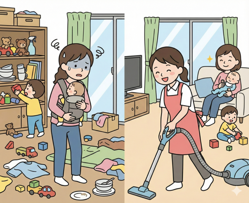 家事や育児で忙しく、掃除や片付けに手が回らないご家庭も多いはず。特に小さな子どもがいる家庭では、清潔な環境を保つことが重要ですが、時間が取れないのが現実です。家事代行や清掃サービスを利用することで、大きなストレスを軽減し、家族との時間を大切にできます。